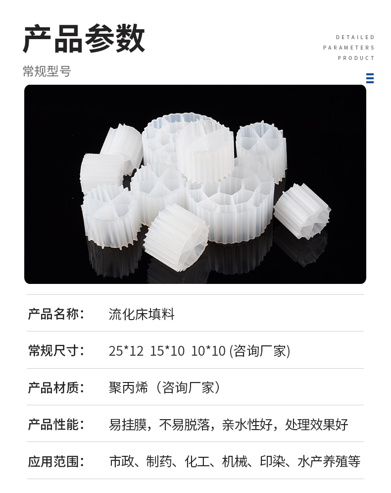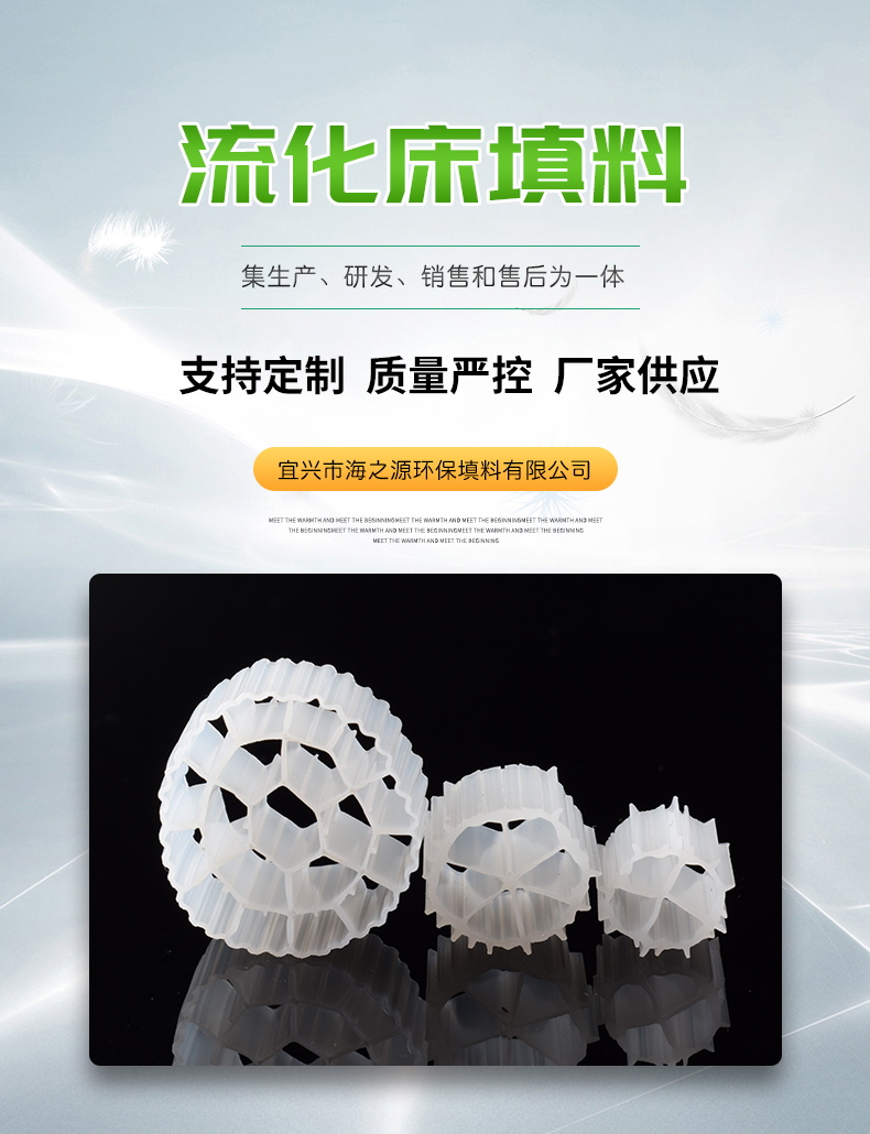 好氧生物流化床工藝中采用立體空心填料為好氧生物載體,填料為中空結構,正常運行進,填料懸浮在水中。填料內部生長厭氧茵,產生反硝化作用可以脫氮;外部生長好氧茵,去除有機物,整個處理過程中同時存在硝化與反硝化過程。