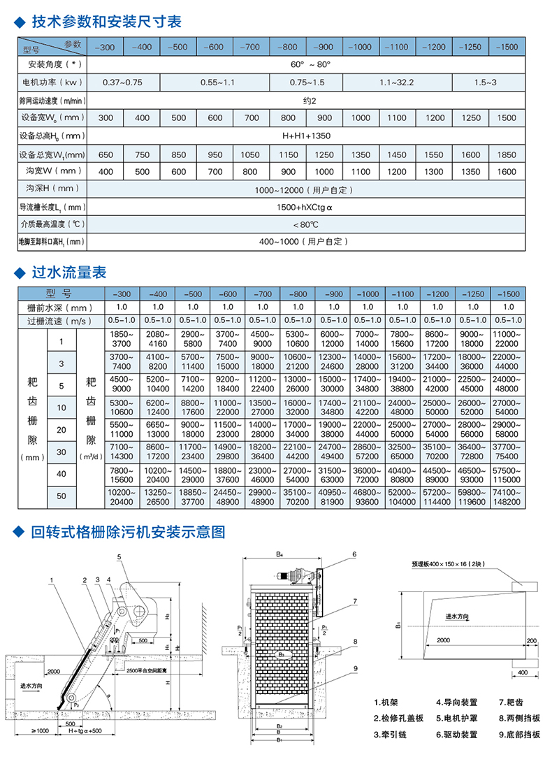 機械格柵是給水排水處理技術中早期產生的凈化設備之一。 它大大地減輕了工人的勞動強度,保護工人身體健康 , 降低進水的水頭損失,提高泵站效率。