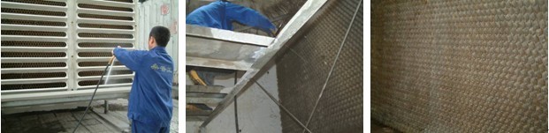 由于冷卻塔長年暴露在外,風扇的吸附力很強,使大量的泥沙、污物進入塔內,長時間運行會使冷卻塔慢慢的降低散熱能力,布水器出水孔很容易堵塞,泥沙及污垢也很容易進入冷卻水系統中去,將直接影響冷卻水系統的正常制冷。為了防止上述情況發生,將損失將到最低,必須對冷卻塔進行定期清洗。